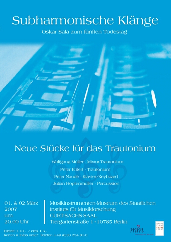 100 Jahre Oskar Sala zu Ehren dieses einzigartigen Musikers! Am 18. Juli wäre Oskar Sala 100 Jahre alt geworden. Dies ist der Anlass für eine Reihe von Veranstaltungen: So wird u.a. das Stück "Wiedersehen in Trautonien"