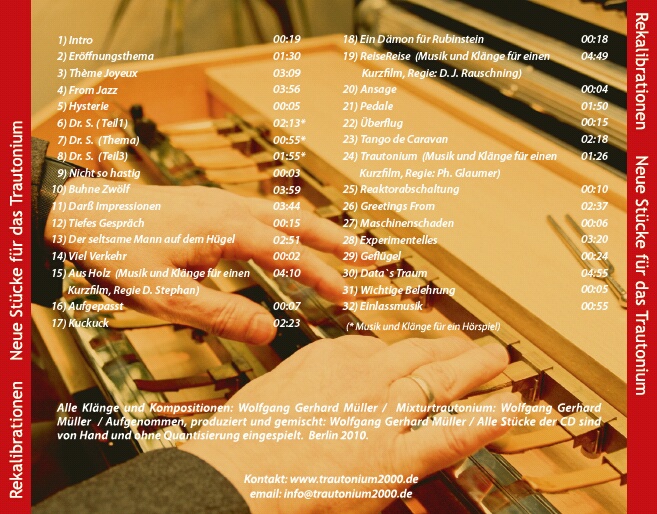 Musik Ort: schwere reiter in München: Hierfür wurden extra 3 Volkstrautonien gebaut, deren Elektronik auf meinem Volkstrautonium 2005 basiert. Die Elektronik und der mechanische Aufbau stammen von mir, die detaillierten Gehäuse Nachbauten von Siegfried Gratz. Mehr Infos im Presseinfo, Flyer und im Poster: |