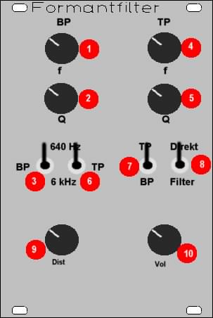 Die Filter sind mit sehr hoher Güte ausgeführt. Der bekannteste Anwendungsfall mit sehr hoher Güte ist die Erzeugung der Vokale a,e,o,u.